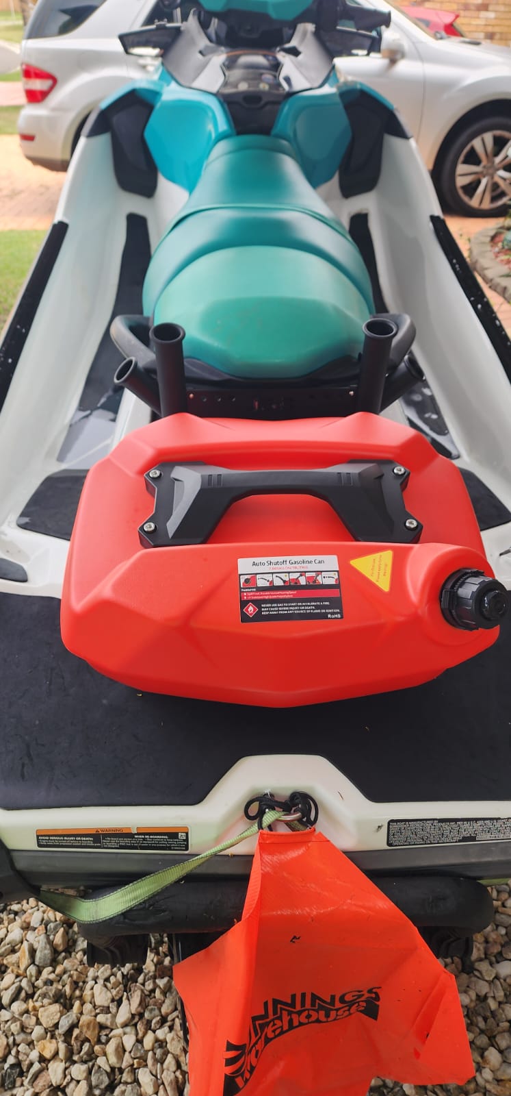 Portable 29-litre fuel caddy for jet ski refuelling on the water. Keep